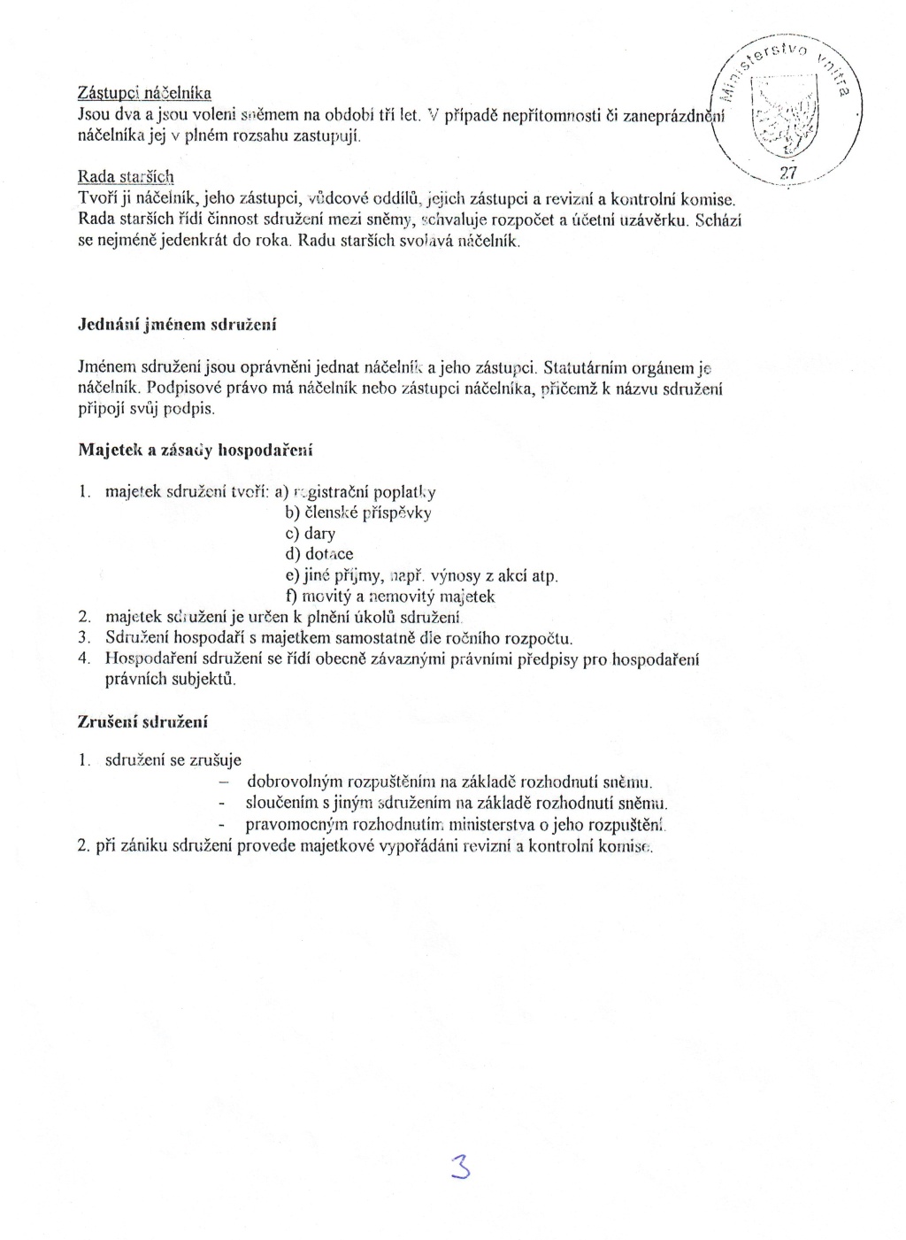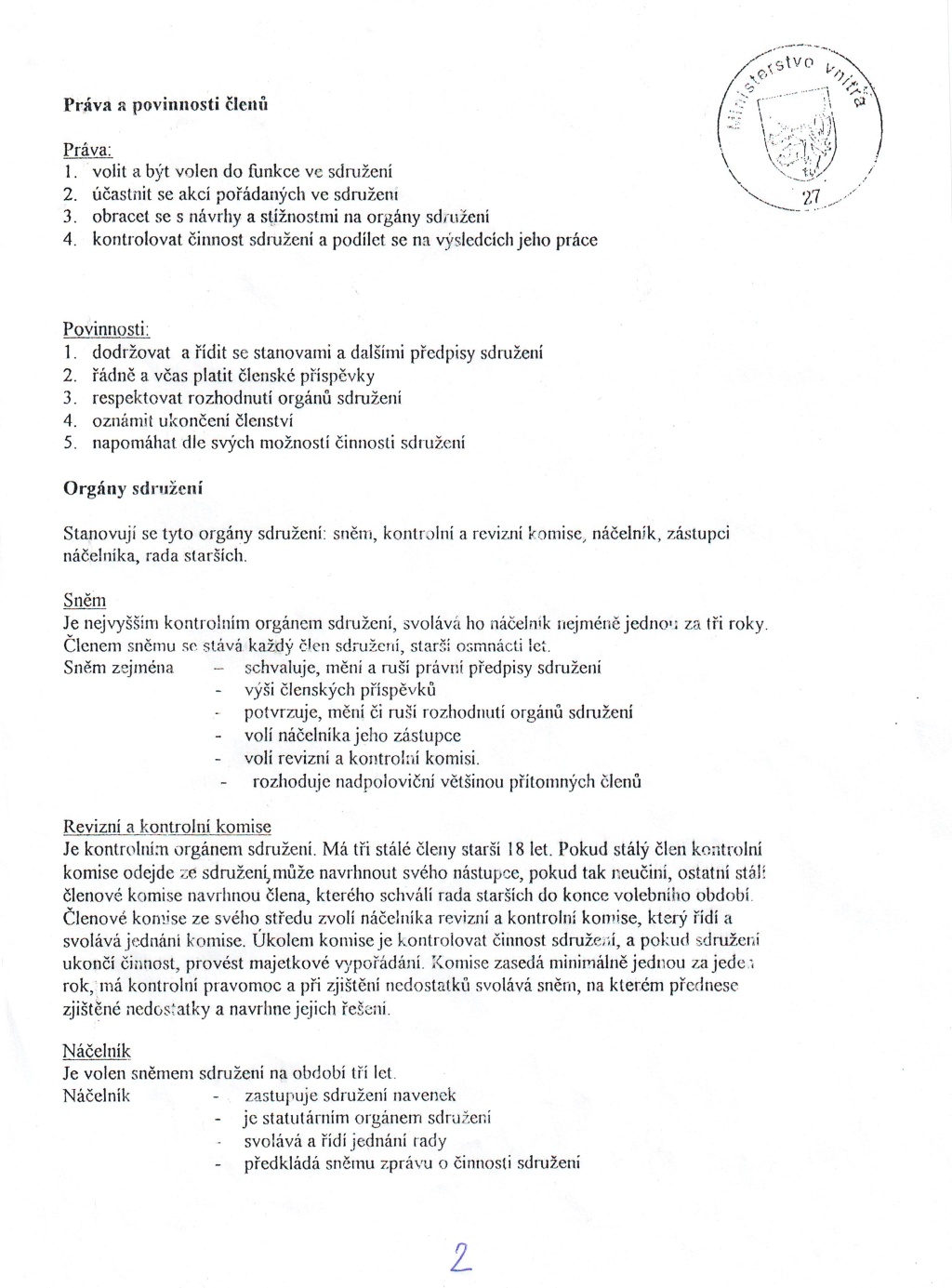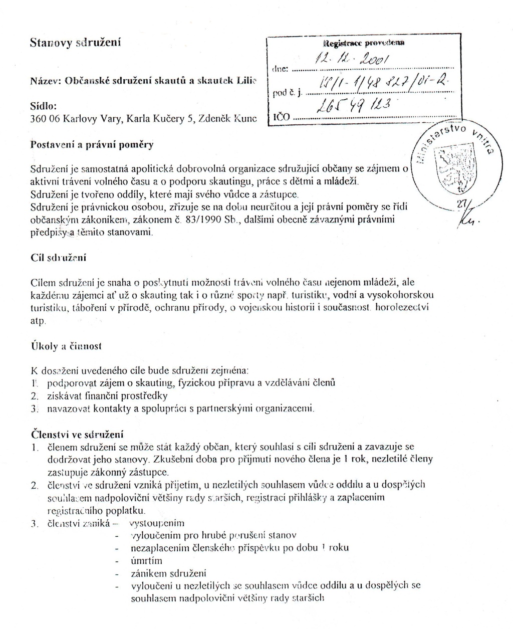 Níže jsou stanovy naší organizace, které si, prosím, přečtěte před podpisem prohlášení, které Vám přinesly děti.